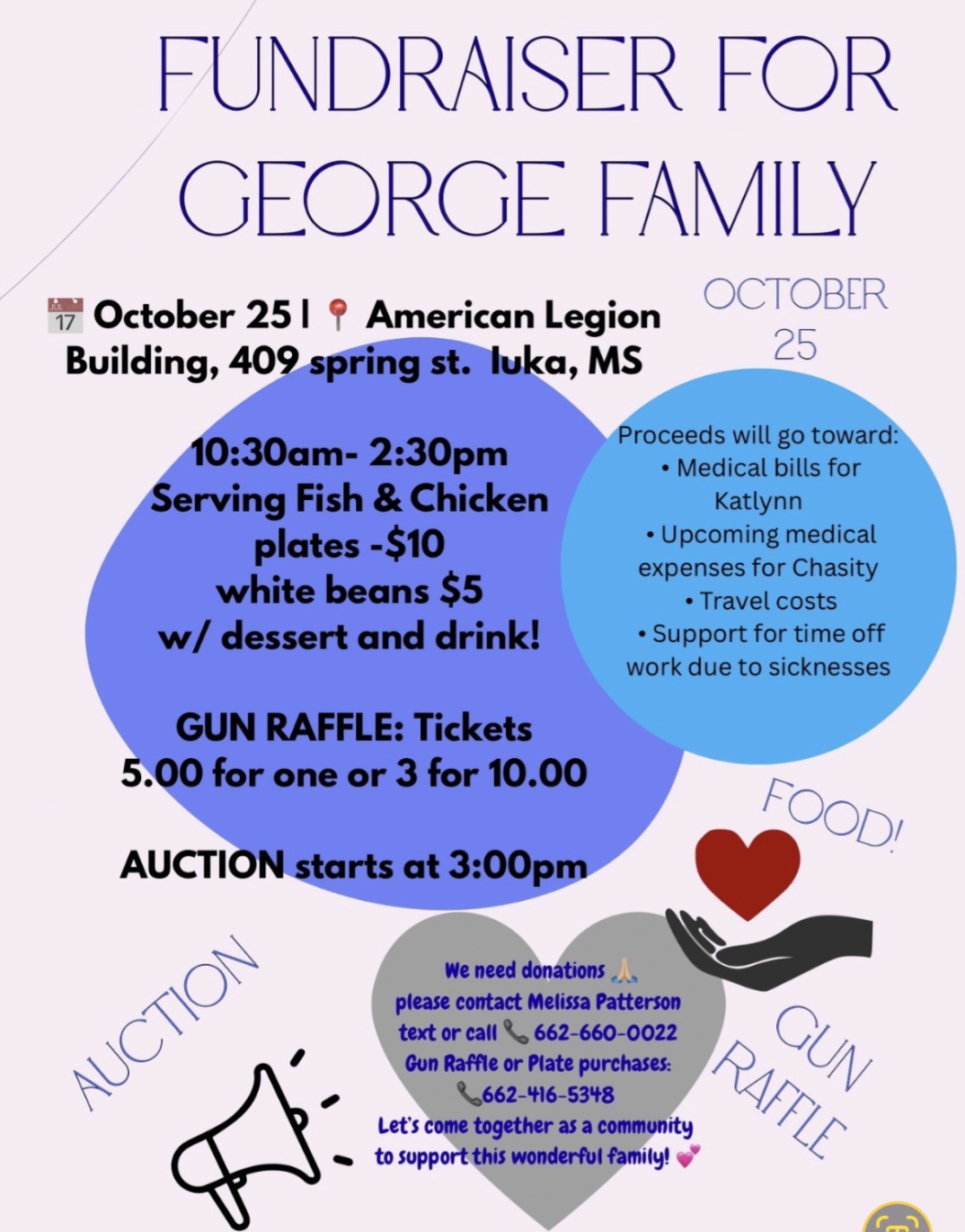 Share Donate This fundraiser is to benefit Jared, Chasity and Katlynn George. Katlynn has been in the hospital for over 3 weeks fighting pancreatitis and gallbladder issues. Katlynn spent 2 weeks at Tupelo hospital as well as in ICU, then weeks at Grandview medical center in Birmingham. Between hospital stays, ICU, ambulance transport, and general… Continue reading Fundraiser for George Family