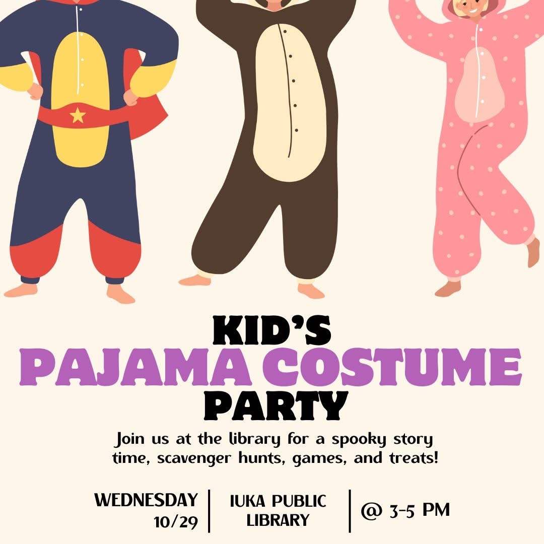 Put on your pajamas and join us for our Kid's Pajama Costume Party! Wednesday, October 29th 3:00 - 5:00 PM We'll have a spooky story time, scavenger hunts, games, and treats - it's going to be a frightfully fun afternoon!