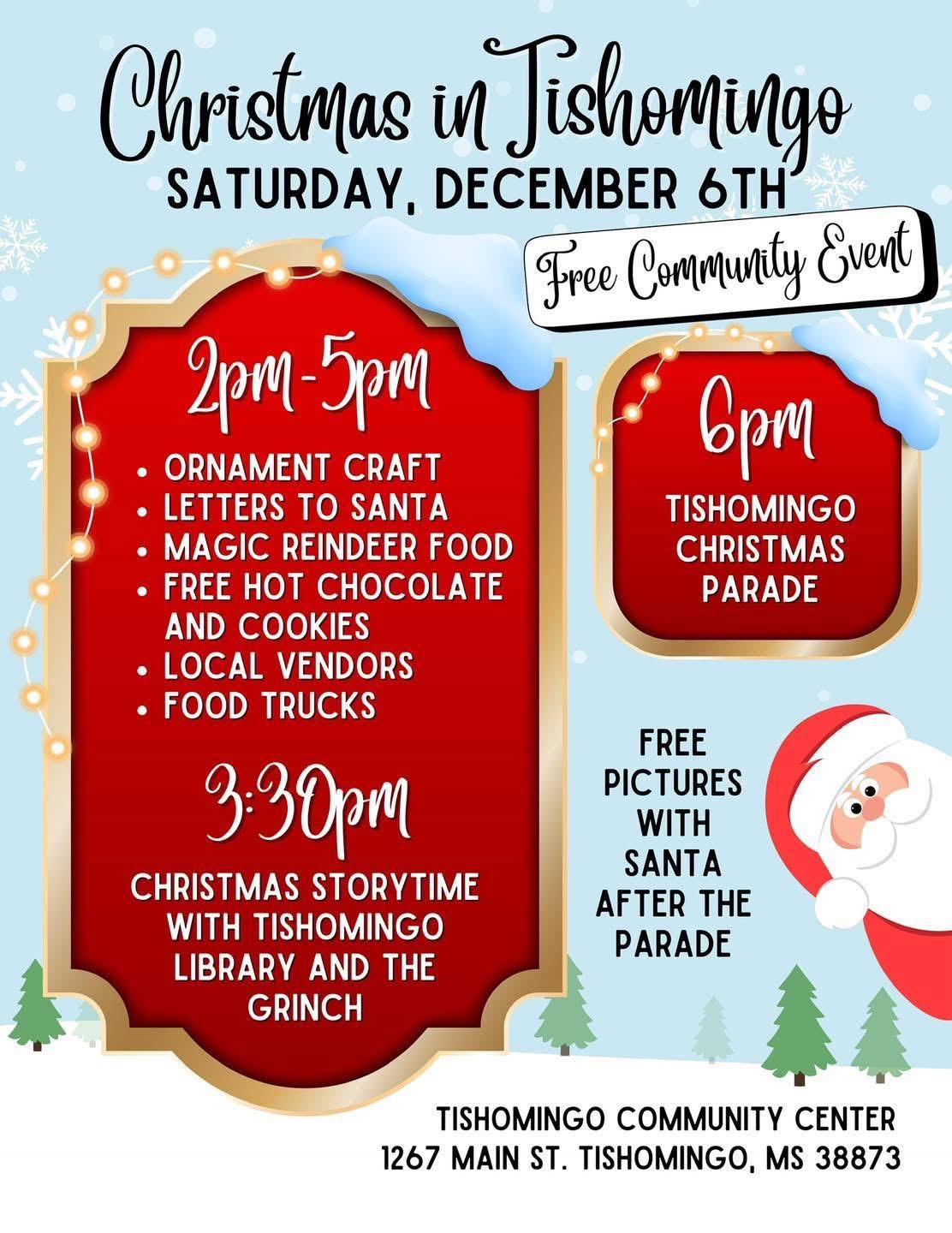 Get ready to celebrate the most wonderful time of the year right here in the town of Tishomingo! 🎅🏼 🎁 2 PM – 5 PMEnjoy an afternoon full of holiday fun with:🎨 Activities for children☕ Complimentary hot chocolate🛍️ Local vendors offering holiday shopping🍔 Delicious food trucks 🎅🏼 Then, stay for the Christmas Parade at 6… Continue reading Christmas in Tishomingo