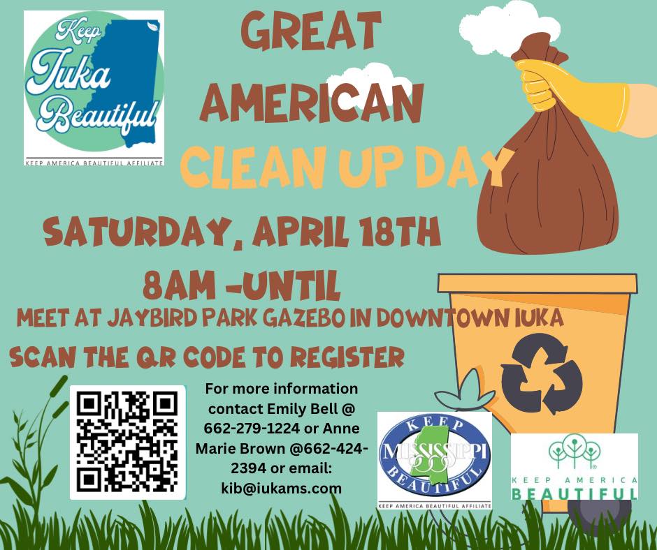 🌎🧹 Join us as we come together to help keep our community beautiful during Great American Clean Up Day! Make plans to be there April 18th beginning at 8:00 a.m.… Continue reading Great American Clean Up Day