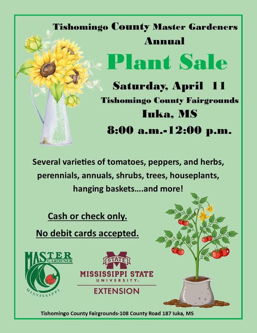 The wait is almost over!! We hope you will join us on Saturday, April 11 at the Tishomingo County Fairgrounds for our Annual Plant Sale! Check out the flyer with only a brief list of the different varieties of plants that will be available! #MSUext